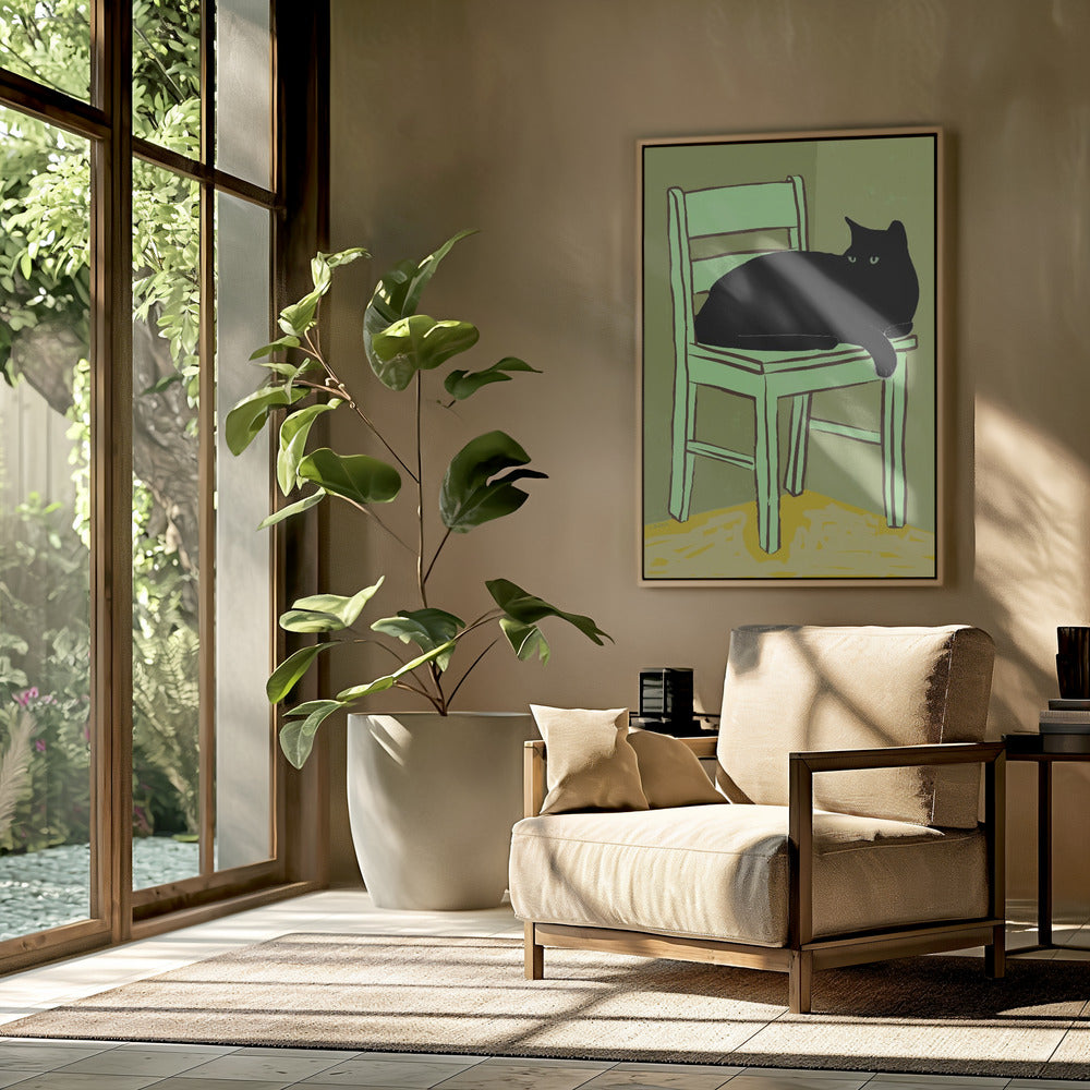 Black cat on chair | Poster