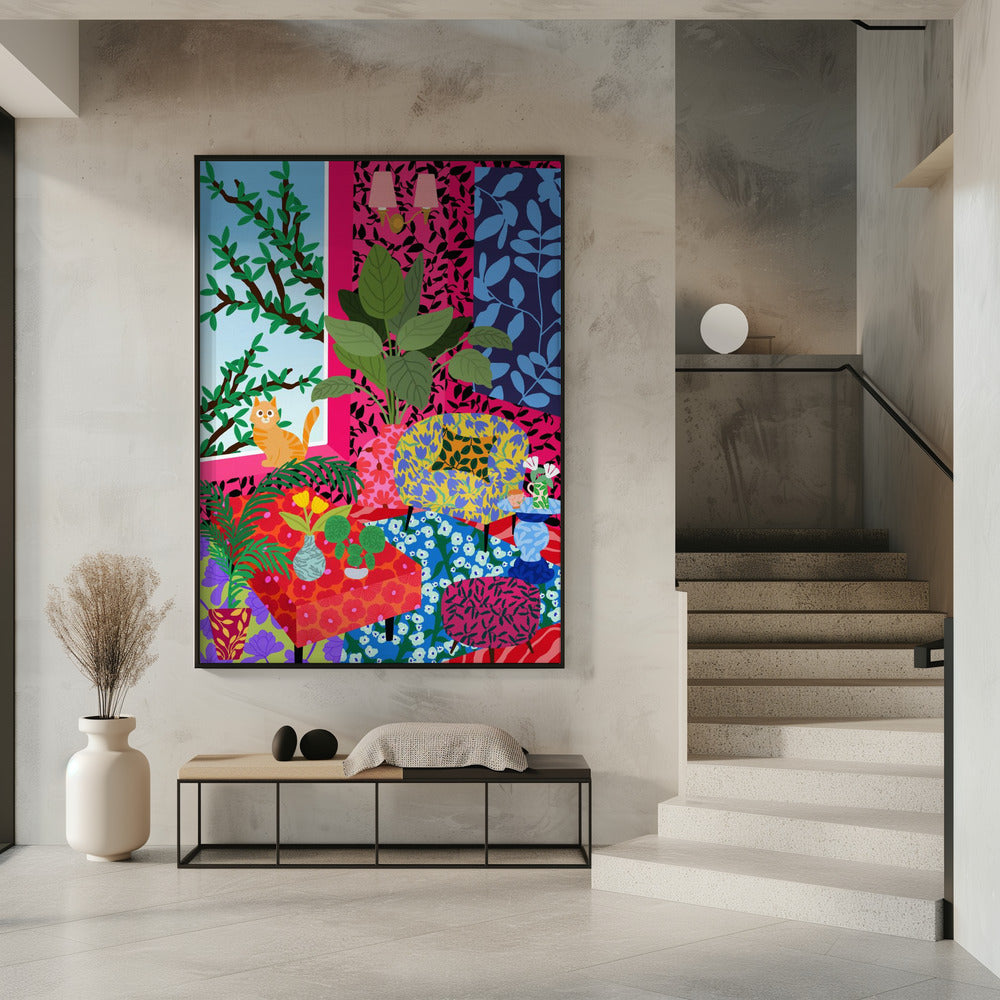 Cat in Flower Power Livingroom | Poster