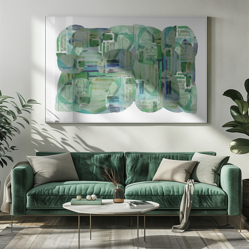 Green Cluster of Abstract Shapes 1 | Canvas