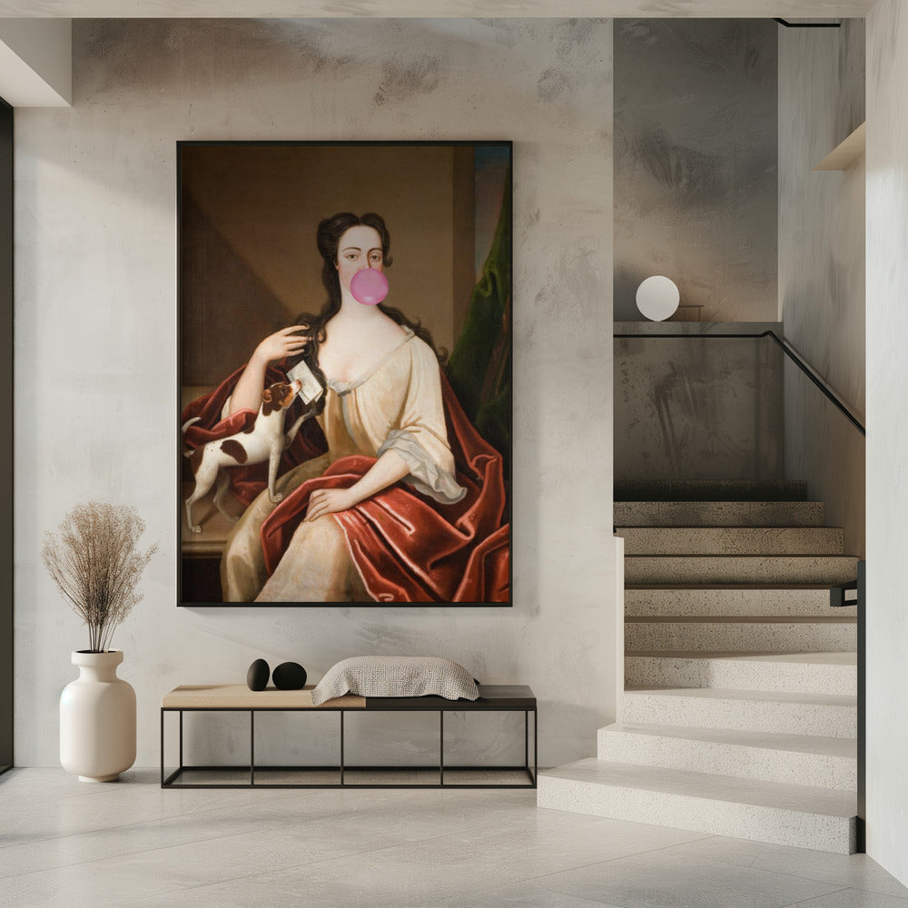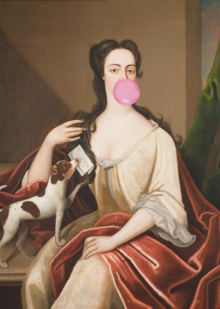 Renaissance Bubble Gum Portrait and Dog / Altered Art | Poster