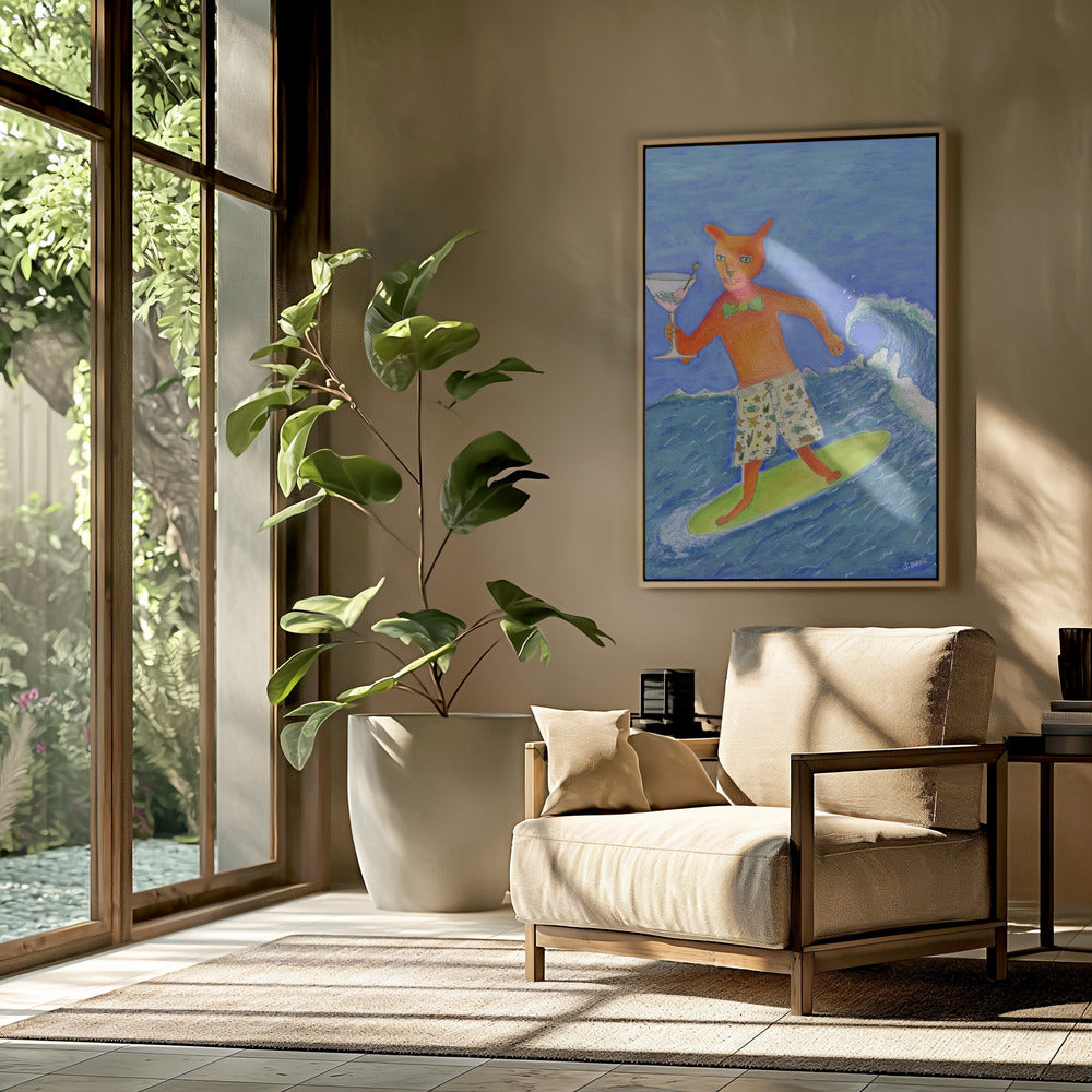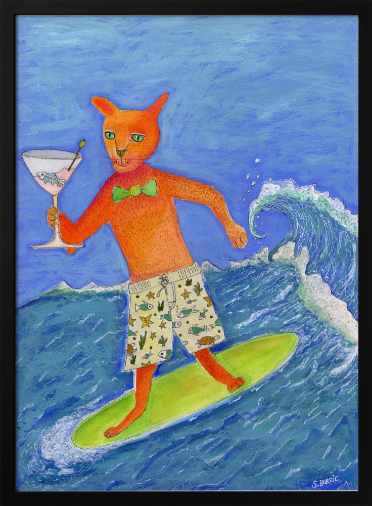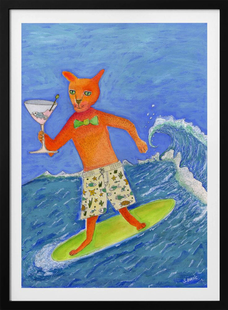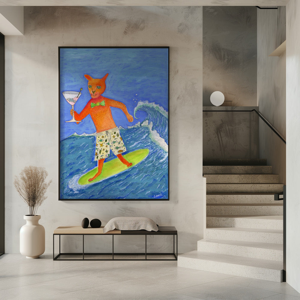 Surfing Cocktail Cat | Poster