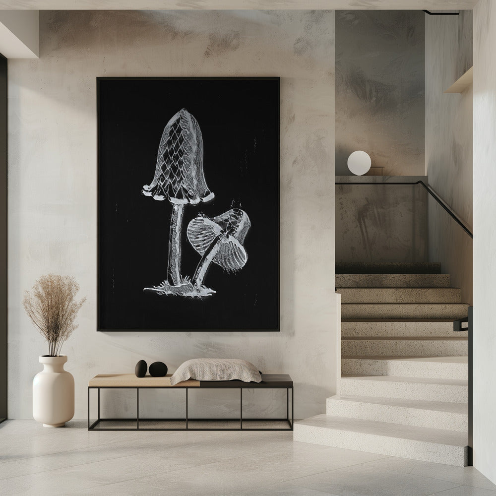 Vintage Inky Cap Edible Mushroom Dark BW | Poster