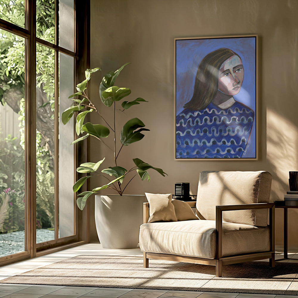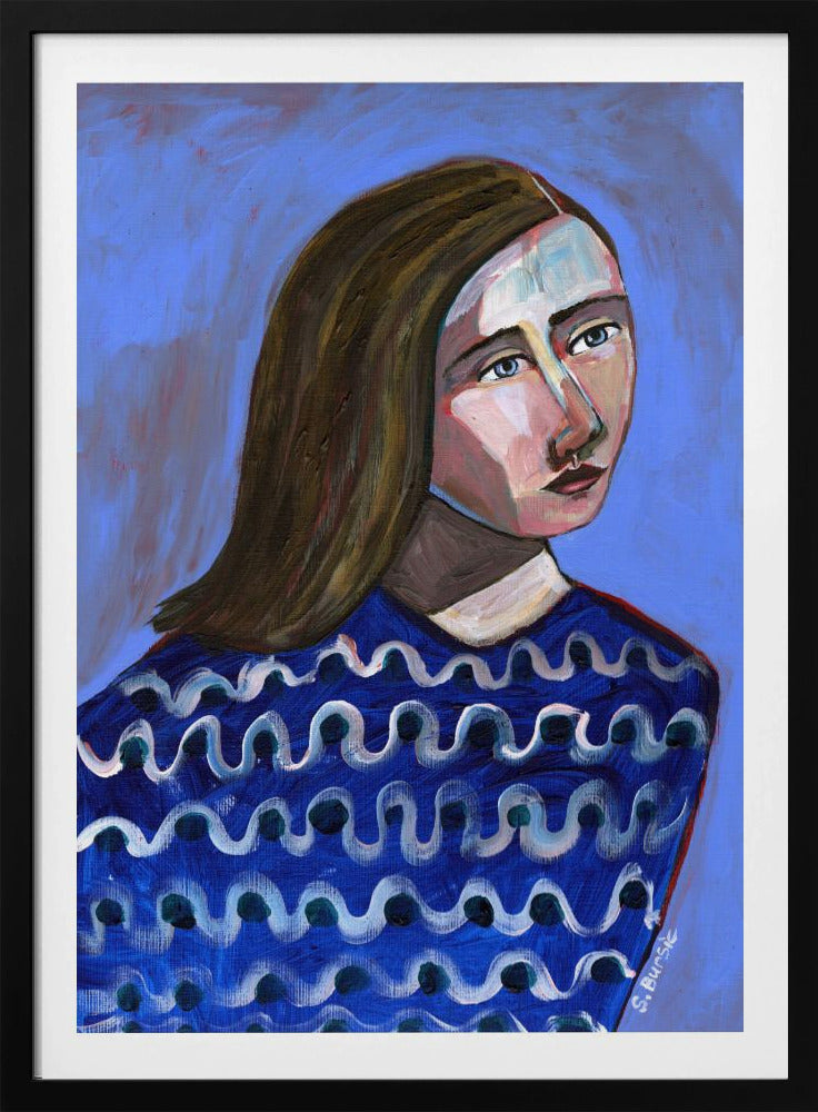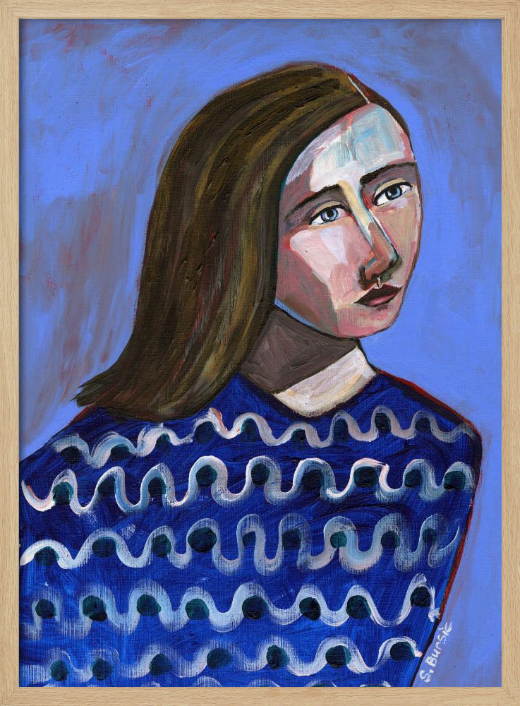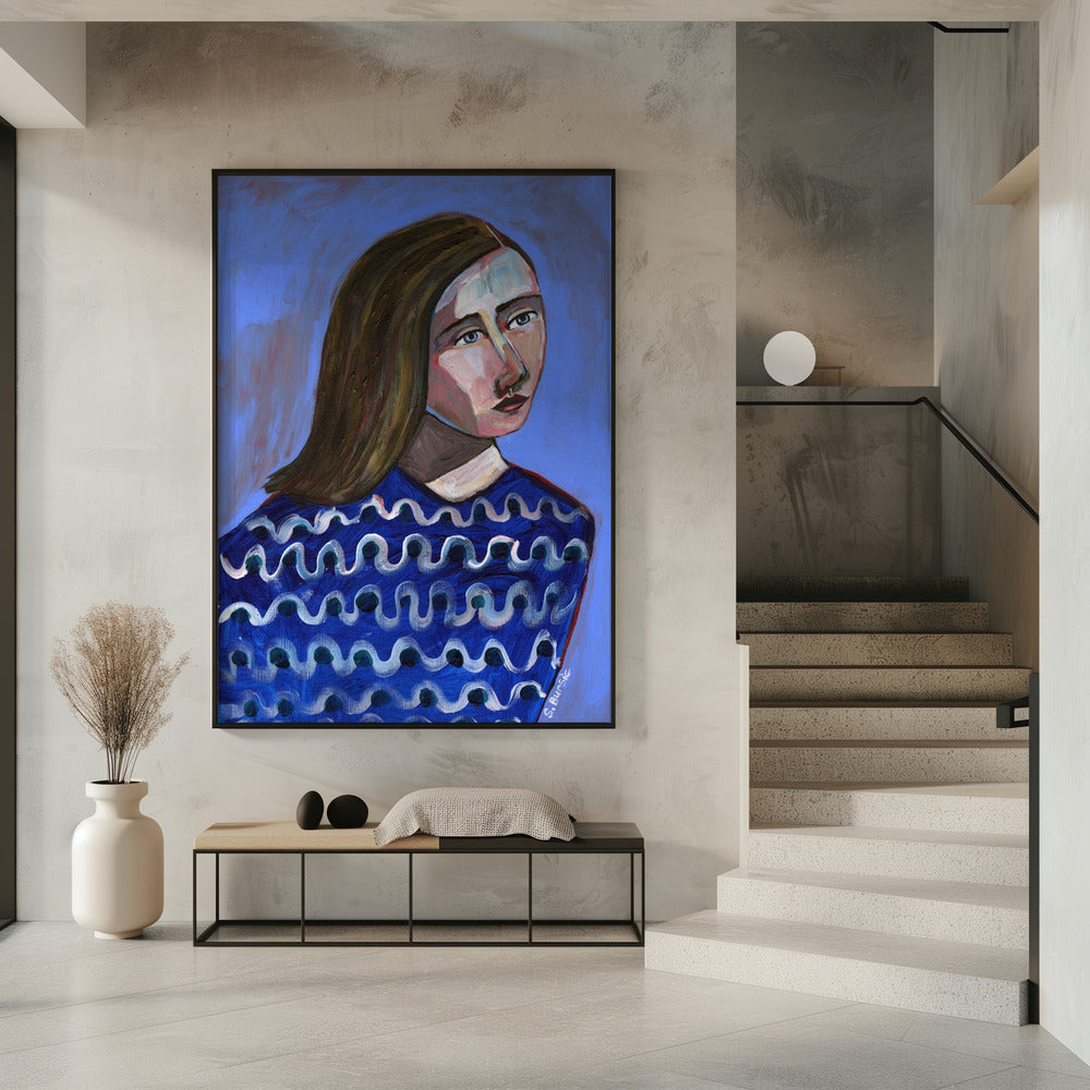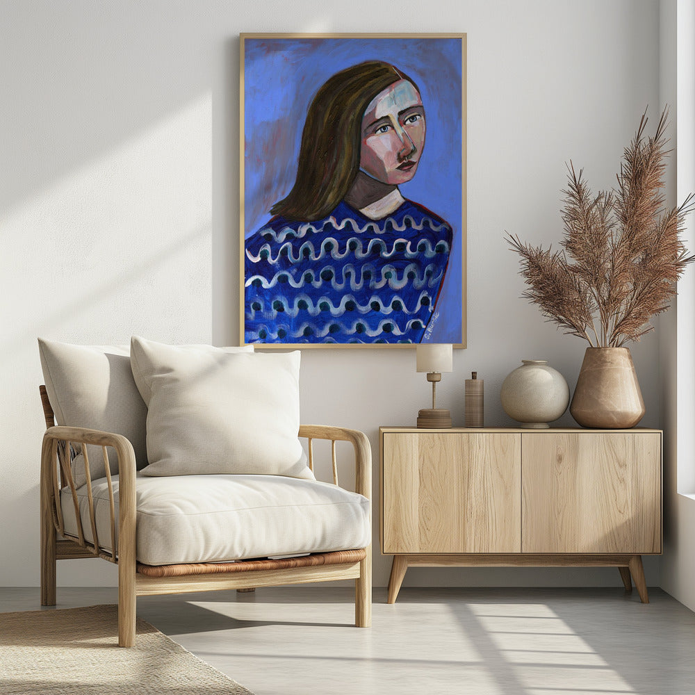 Woman in Blue Sweater Naive Portrait Figurative | Poster